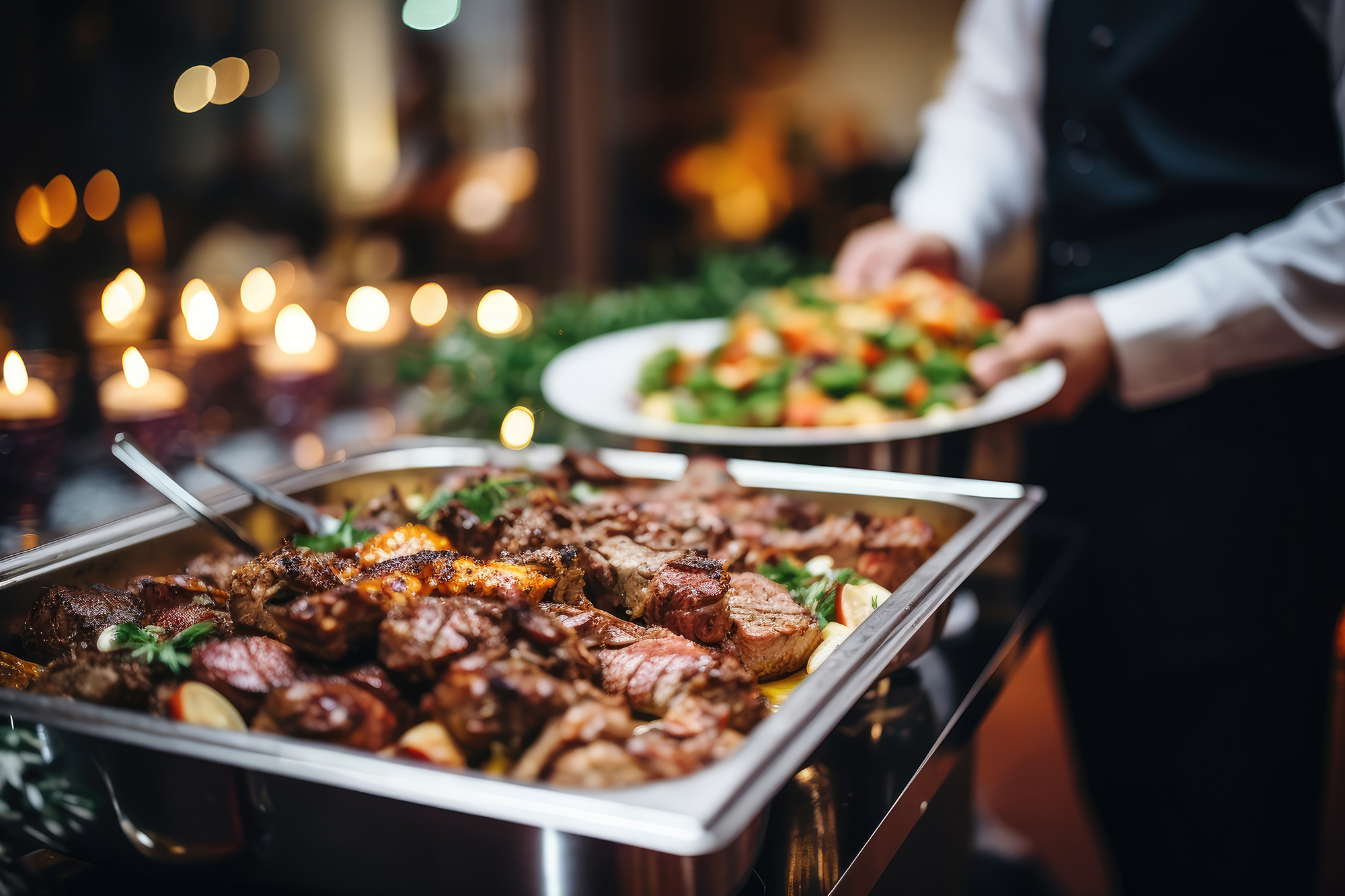 Buffets fríos y calientes, ideales para eventos corporativos o celebraciones.